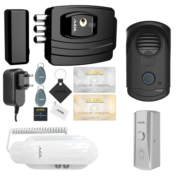 Kit Fechadura Eletrônica Agl Ultra Card Interfone e Porteiro Preta