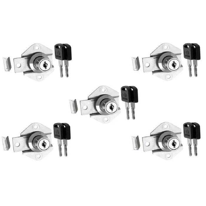 Kit com 5 unidades Fechadura Miolo Fecho Gaveta Móveis Gaveteiro 22mm