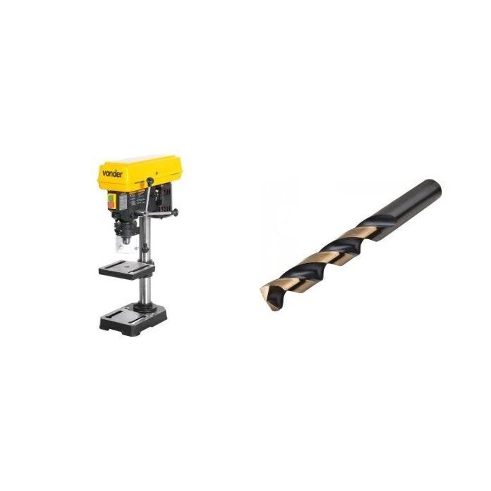 Equipada com motor elétrico, cabo de ligação e interruptor eletromagnético, proporcionando segurança e praticidade. Possui ainda mesa giratória inclinável, local para adaptar lâmpada para iluminação da área do furo (não acompanha lâmpada) e sensor na parte interna da tampa de proteção da transmissão, que garante a segurança do operador pois, em caso de abertura involuntária da tampa, o equipamento será desligado e para religar, é necessário fechar a tampa e acionar o interruptor. Conta também com capa de proteção do mandril, alavanca de avanço com 3 braços e 5 velocidades. Produzida em aço rápido, proporcionando maior resistência e durabilidade. Possui ponta com afiação, que facilita a furação e reduz o esforço da broca, corpo com revenimento a vapor, que conduz melhor o fluído, aumentando sua vida útil.