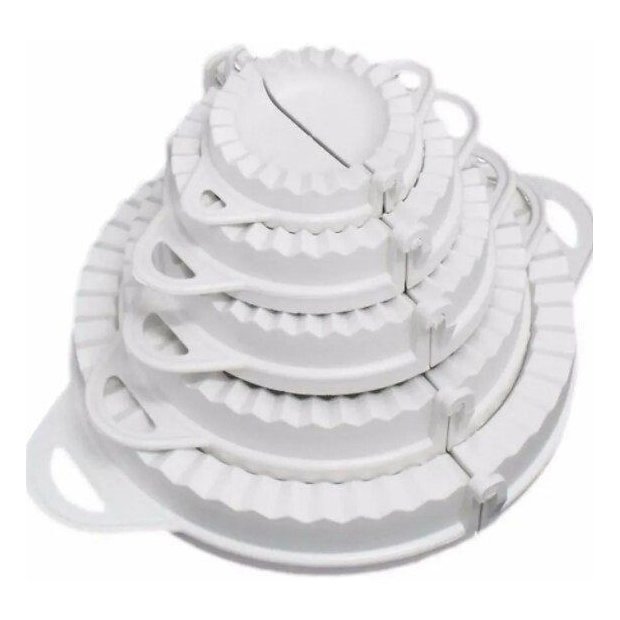 **Forma Pastel Rissole Salgados Kit Modelador Massas 5 Formas**Um produto que vale por 5, uma verdadeira fábrica de fazer Pastel, Rissoles, Ravióli e Fogaça.Kit mais rápido e prático de fazer diversos pastéis ao mesmo tempo, corta a massa, dobra e lacra.Excelente para você aumentar sua produção e ganhar um dinheirinho extra, ideal para bares, padarias, lanchonetes, buffer, festas e também para você que precisa de praticidade na sua cozinha.Detalhes:Material de fabricação plástico atoxico resistente.Produto de ótima qualidade e durabilidade.1 Molde de 15 cm1 Molde de 12 cm1 Molde de 9,5 cm1 Molde de 8 cm1 Molde de 5 cm