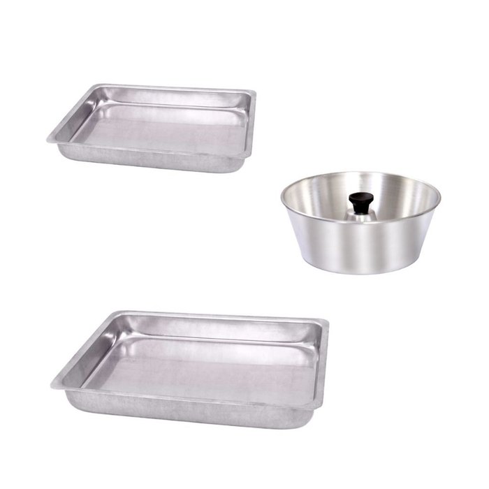 Kit Formas 3 Peças - 1 Forma Retangular N1 - 1 Forma Retangular N2 - 1 Forma Redonda Pudim 22cm