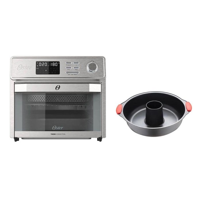 Kit Forno e Fryer Oster 25L Multifunções 10 em 1 OFOR250 e Assadeira de Aço com Furo Alta 27cm -