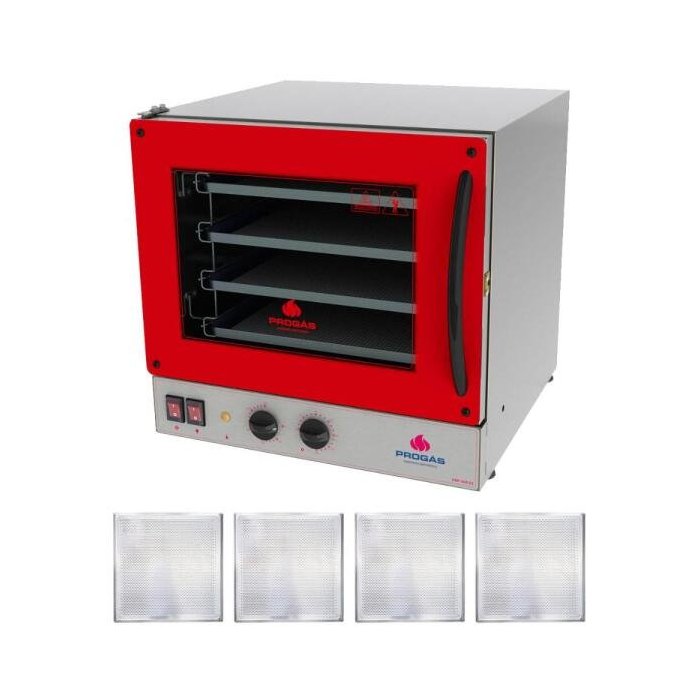 KIT - Forno Turbo PRP-004 127V Vermelho + 4 Assadeiras - Progás Vermelho
