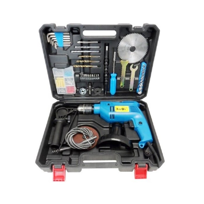 Voltagem: 220v.Surpreenda-se com o Kit de ferramentas TS-1904 da KaqQi. Equipado com uma furadeira de impacto de fio de cobre de 650 Watts, extremamente potente, é absolutamente versátil e indispensável para o dia a dia. Conta com incrível tecnologia capaz de transformar a furadeira em uma parafusadeira, esmerilhadeira, lixadeira e até em desentupidora. É isso mesmo: um inovador kit intercambiável o qual permite acoplar e alterar seus acessórios, transformando-a numa poderosa, única e exclusiva oficina de ferramentas. E mais, acompanha um kit maleta com brocas, chave allen, chave de fenda, chave de boca, eixo flexível, parafusos, buchas, pontas bits, jogo de soquetes, disco de corte, disco de lixar, capa protetora, alça empunhadura, mangueira desentupidora / drenagem, limitador de perfuração, mandril, fonte de energia.- Ideal para perfurações, aparafusações, cortes, lixamentos, desentupimento de canos. - Aplicações domésticas, escritórios, oficinas, etc.- Multi função, intercambiável.- Furadeira com opção de impacto, duplos sentido (horário e anti-horário), com trava de segurança e regulável.Características técnicas:Fabricada na versão: 220v (não é bivolt).Peso: 4,5kg.Medidas: 52x30x8cm.Modelo: TS-1904.Marca: KaQi.Garantia: 3 Meses.Só na Magazine Girassol você encontra as melhores soluções de produtos do mercado e conta com todo apoio e suporte necessários da nossa equipe de atendimento apaixonada e especializada. Tudo à pronta entrega, envios para todo Brasil, com nota fiscal e garantia. Muito mais facilidade, qualidade e comodidade. Tenha a melhor experiência de compra online. Magazine Girassol, sua satisfação é o nosso Sol.