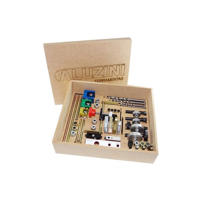 | CARACTERÍSTICAS | SÃO TODOS OS NOSSOS GABARITOS E DEMAIS COMPONENTES EM UMA ÚNICA MALETA: MARCENARIA PORTÁTIL!GABARITA AS FURAÇÕES NAS CHAPAS DE MDF/MDP 15MM,18MM E 25MM PARA DISPOSITIVOS DE MONTAGEM DO TIPO: TAMBORFIX |