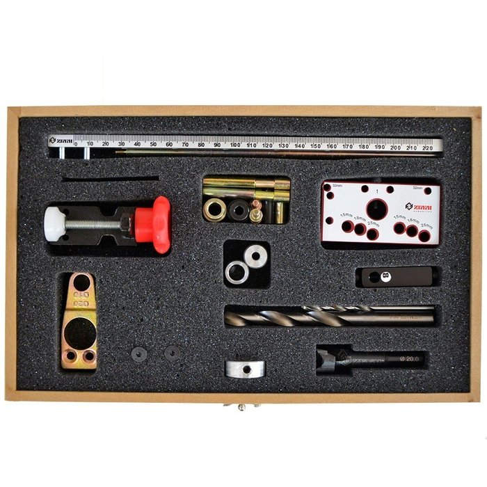 | ITENS QUE ACOMPANHAM | 01 ESTOJO EM MDF COM ESPUMA, 01 GABARITO GRAMPO ESCALA, 01 MASCARA DE 20MM, 01 FRESA DE 20MM COM LIMITADOR DE PROFUNDIDADE, 01 BROCA DE 10MM COM LIMITADOR DE PROFUNDIDADE, 01 BROCA DE 5MM COM LIMITADO |
