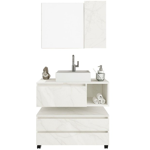 - Cuba em mármore sintético e acabamento em brilho polido;