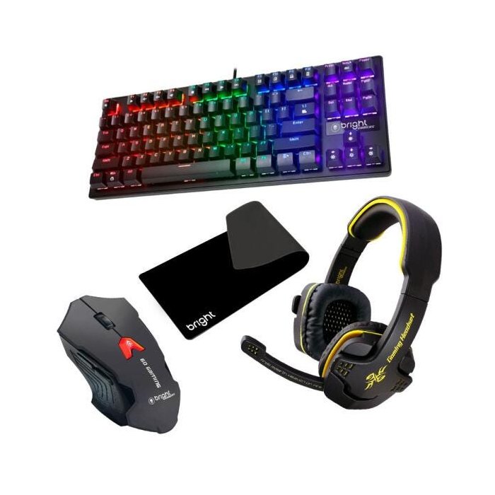 Combo Gamer Teclado Mecânico Compact com Mouse Gamer Headset USB 7.1 e MousePad Grande