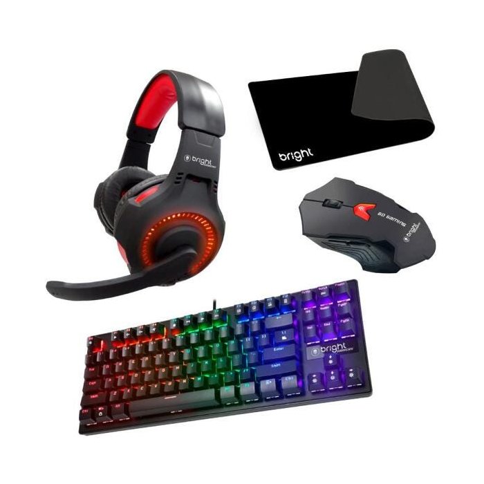 Combo Gamer Teclado Mecânico Compact com Mouse Gamer Headset Gamer com Led e MousePad Grande