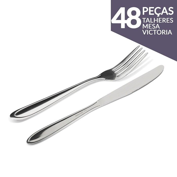 O Kit de Garfos e Facas de Mesa 48 peças Victória Gourmet Mix chegou para deixar sua mesa ainda mais bonita, elegante e completa. Produzido em aço inox cromado, com linhas ovaladas, detalhes com leve risco nas bordas e acabamento em alto brilho, que dá aos talheres aparência mais leve e sofisticada: a combinação perfeita de design, durabilidade, resistência e qualidade em uma única peça! Além de oferecer recepção diferenciada e de alto padrão para os seus clientes ou convidados, também leva mais requinte aos diversos tipos de ocasiões. Mais higiênico, fácil de limpar e armazenar, você pode começar agora a sua coleção de talheres e utensílios de cozinha Victória Gourmet Mix. Aproveite e garanta facas, colheres, garfos, espátulas, conchas e muito mais da melhor qualidade! Ref.: KT-GX20-GF48 Material: aço inoxidável Peso faca (KG): 0,042 Peso garfo (KG): 0,031 CxLxA faca: 21,3 x 1,8 x 25 cm CxLxA garfo: 19,3 x 2,4 x 0,16 cm Marca: Gourmet Mix Fabricante: Marcamix – Utilidades Gourmet Recomendações: Para conservar as peças da linha Victória Gourmet Mix, utilize detergente neutro na lavagem, e para melhores resultados, use sempre que possível uma solução alcalina. Lave de preferência com água morna e use sempre uma esponja macia. Não use o lado verde da esponja ou bucha de metal. Nunca leve ao forno ou forno de micro-ondas. Vantagens Os talheres da linha Victória Gourmet Mix podem ser lavados em máquinas de lava-louças e comparados a outros tipos de materiais, são bem mais resistentes e duráveis. Conheça também os outros itens da linha Victoria Gourmet Mix e comece a sua coleção agora mesmo!