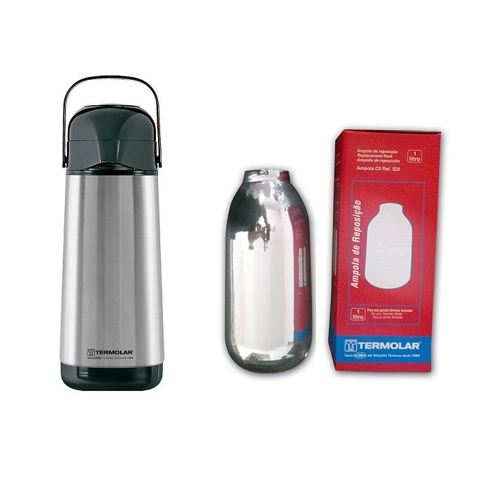 Kit Garrafa Termica Pressao 1,0L INOX Lumina + Ampola de Reposiçao Termolar