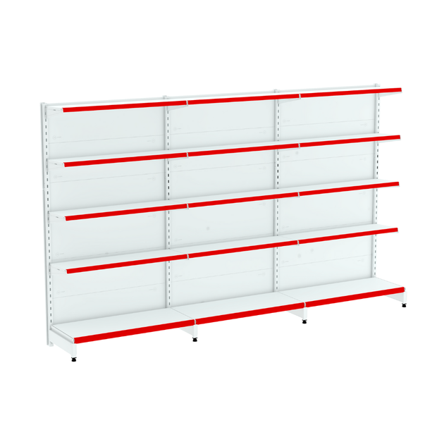 Kit Gôndola Parede Branca 3,00m de Largura x 1,70m de Altura – AmapáAs Gôndolas Amapá Premium Flex são ideais para armazenagem e exposição de seus produtos em supermercados, mercearias, farmácias, lojas de utilidades, materiais de construção, agropecuárias e muito mais.Prática e fácil de montar possui um sistema de encaixe sem utilização de parafusos, com bandejas reguláveis a cada 4,5cm, pés com regulagem de altura e colunas dupladas. Além disso, as gôndolas recebem um tratamento especial em toda a superfície com pintura eletrostática epóxi, antibacteriana, uniforme e resistente.As gôndolas possuem qualidade, resistência e durabilidade garantidas pelo uso de matérias-primas de alto padrão, processos produtivos com a mais alta tecnologia do mercado e um cuidado especial em cada etapa de produção.DimensõesAltura: 1,70mComprimento: 3,00mProfundidade da Bandeja da Base: 0,40mProfundidade das Bandejas Superiores: 0,30mProfundidade da Lateral: 0,45mCaracterísticasCor: BrancaComprimento da Bandeja: 0,95mQuantidade de Bandejas por Gôndola: 5Capacidade das Bandejas Superiores: 40 kgCapacidade das Bandejas Inferiores: 60 kgPorta Etiquetas Cor: Amarela.Contém- 01 Gôndola Premium Flex 1,70m Branca Parede Inicial 40/30 – Amapá - 02 Gôndolas Premium Flex 1,70m Branca Parede Continuação 40/30 – Amapá.