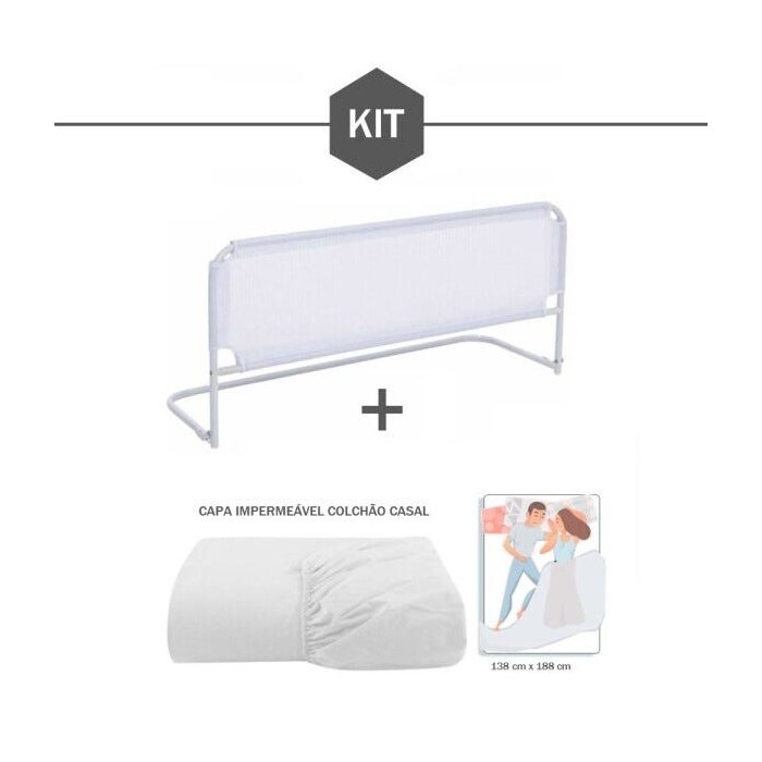 Kit - Grade de proteção para cama box + Protetor capa de colchão casal padrão impermeável