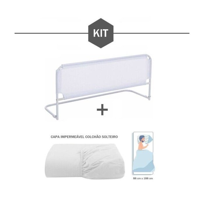 Kit - Grade de proteção para cama box + Protetor capa de colchão solteiro impermeável