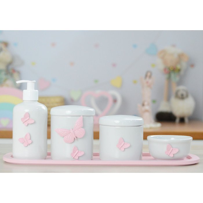 Kit Higiene Bebê Porcelana Borboleta Menina Quarto Bancada Banho Cuidados Recém Nascido K110