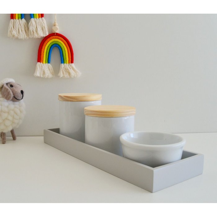 Kit Higiene Bebê Porcelana Pinus + Bandeja Cinza Branco e Cinza