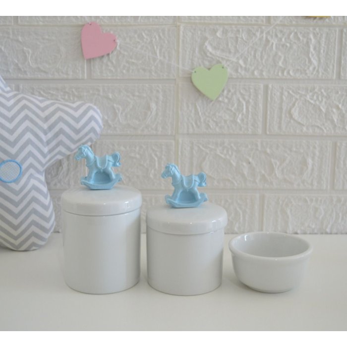Kit Higiene Porcelana Baby Maternidade + Potes + Molhadeira K015 Cavalo Azul