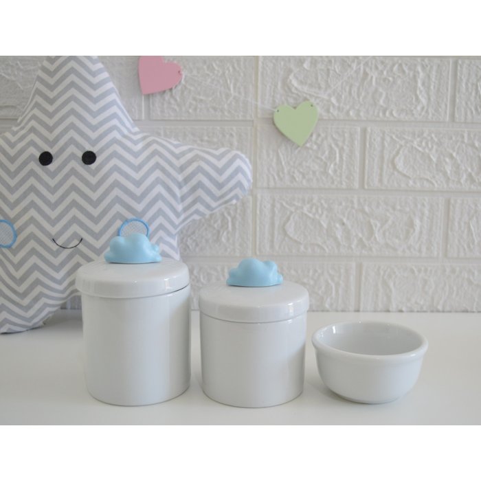 Kit Higiene Porcelana Baby Maternidade + Potes + Molhadeira - K015 Nuvem Azul