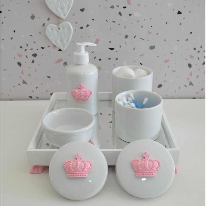 Kit Higiene Porcelana Bebê Banho Cuidado Quarto K014 Coroa – Ciranda Arte - Criativa