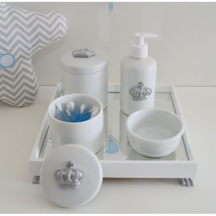 Kit Higiene Porcelana Bebê Banho Cuidado Quarto Unissex Maternidade K014 Coroa - Prata