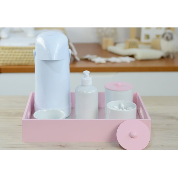 Kit Higiene Porcelana Bebê Decoração - Rosa.