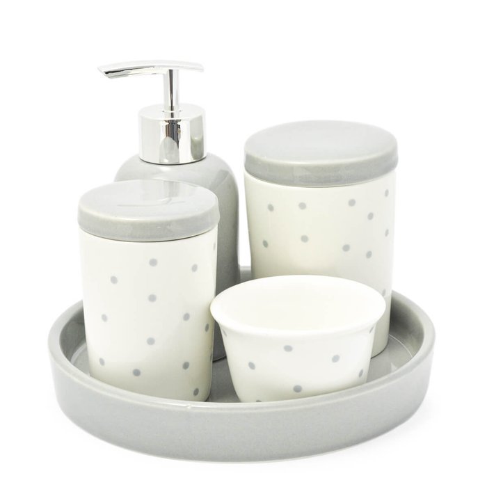 Kit Higiene Porcelana Bebe Infantil Poa Cinza e Branco