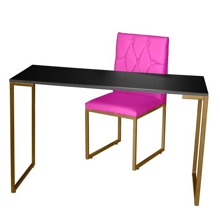 Kit Home Office Mesa Para Escritorio com Cadeira Malta Ferro Dourado Suede Pink - Móveis Mafer