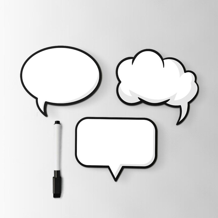 No que você está pensando agora? Com os Ímãs Balões de Diálogo você pode deixar um bilhetinho para alguém especial, anotar algo que precisa comprar, fazer desenhos e o que mais imaginar. Pense, anote, mude de ideia, apague e recrie quantas vezes quiser.
