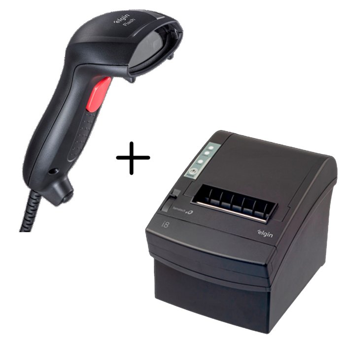 KIT IMPRESSORA TÉRMICA BEMATECH I8 FULL MAIS LEITOR CODIGO DE BARRAS FLASH II LINEAR USB ELGIN