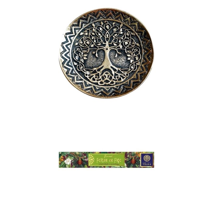 Kit Incensario Redondo Árvore + Incenso Ohana Folhas Figo