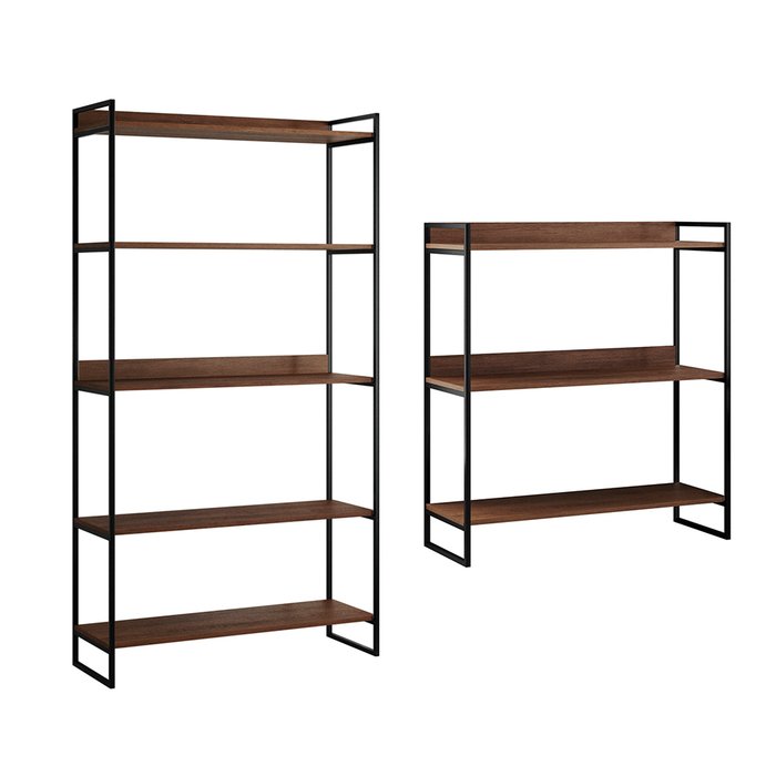 Kit Industrial Estante Guaecá 180x95 e Aparador Industrial 3 Prateleiras Córdoba 100x95 Preto/imbuia
