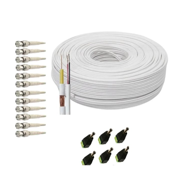 Kit para Instalação de 06 Câmeras - Cabo 100mts -12 conectores bnc mola - 06 conectores plug P4 macho