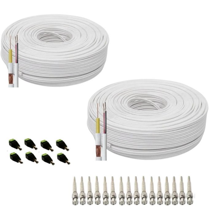 Kit para Instalação de 08 Câmeras - 16 conectores bnc mola - 08 conectores plug P4 macho 2 cabos de 100mts