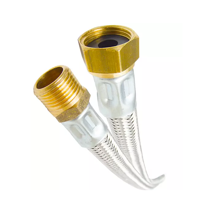 Mangueira de 1,00mts p/Gás Flexível em Malha de Fio de Alumínio Externo/Interior de Borracha Nitrílica M/F Latão Usinado.