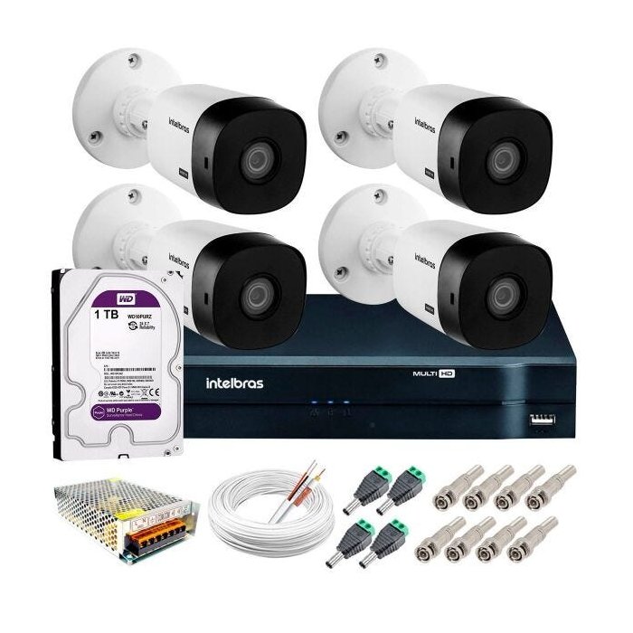 Kit Intelbras 4 Câmeras HD 720p VHL 1120 B + DVR 1104 Intelbras com HD 1TB