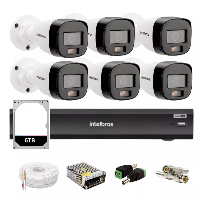 Kit Intelbras 6 Cameras Segurança 1220b Full Color Dvr Imhdx 3008 + Hd 6tb