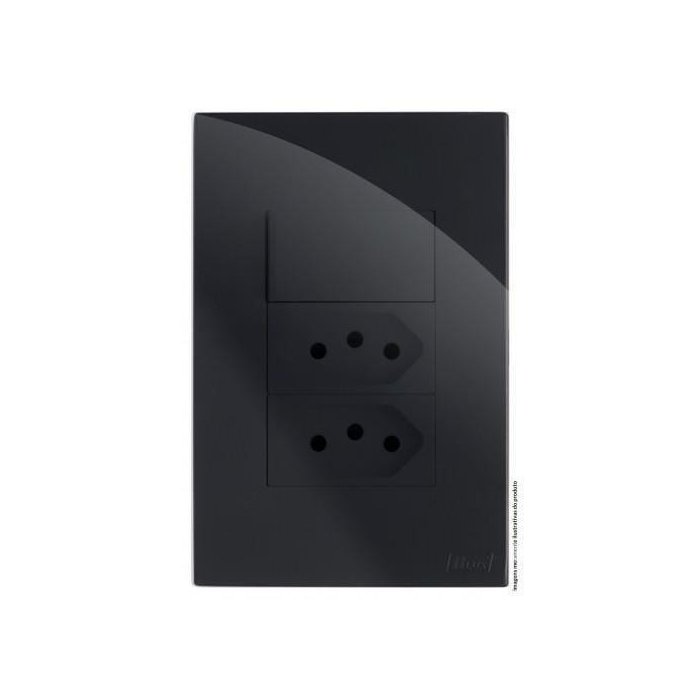 1- cj interruptor simples + tomada dupla 10a 4x2 - recta black gloss - brg11339-5bk