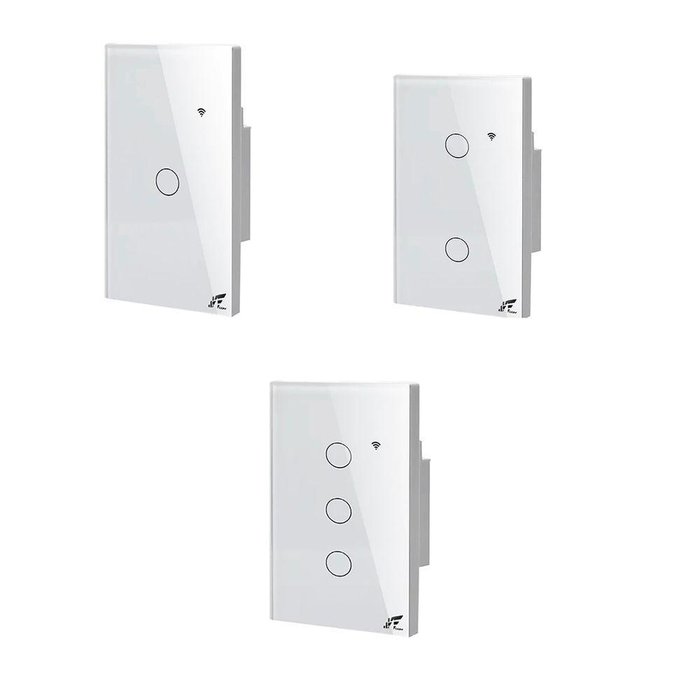 COMPATÍVEIS COM ALEXA E GOOGLE HOMEAPLICATIVOS: TUYA SMART, SMARTLIFE**Ou demais aplicativos com base Tuya Kit de Interruptores Inteligentes Wi-Fi para automatizar sua residência!- Comando de voz: Gerencie seus dispositivos através do comando de voz. Compatível com as principais Assistentes Virtuais do mercado;- Agendamentos: Defina os horários de funcionamento dos seus dispositivos;- Controle Remoto: Monitore e controle seus dispositivos através de seu smartphone; - Compartilhamento: Compartilhe o controle de seus dispositivos com os membros de sua família. ESPECIFICAÇÕESMarca: JWCOMGarantia: 3 mesesVoltagem: 7 – 32V DCPadrão Wi-Fi: IEEE 802.11 b/g/n.Corrente máx. Interruptor: 10APotência máx. Interruptor: 2500WTensão de trabalho: AC 100 ~ 250VFrequência: 50 ~ 60HzCompatibilidade: Android e iOS.App do Produto: SmartLife, NovaDigital e Tuya SmartMaterial utilizado na Fabricação: Plástico ABS, Metal e Circuito eletrônico ESPECIFICAÇÕESMarca: AitekGarantia: 3 mesesVoltagem de Entrada: 90-240V/AC 50/60HzCarga Máxima: 10A/ 2200W/ Por TeclaWi-Fi: IEEE 802.11 B/G/N - 2.4GHz Requisitos para funcionamento pelo Aplicativo e Assistente Virtual:- Rede Wi-Fi 2.4GHz;- Conexão com a Internet;- Instalação de aplicativo no celular Para instalação física:- Necessita de Neutro- Necessita de Fase “110v ou 220v”- Fiação de retorno à lâmpada. Conteúdo da embalagem:6 Interruptores de 1 Botão1 Interruptores de 2 Botões1 Interruptor de 3 Botões