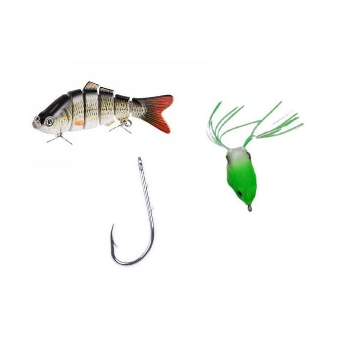 Kit Isca Sapo Anti Enrosco + Isca Lambari Articulado + AnzolIdeal para pesca de tucunaré, traíra etcContém: Isca sapo anti enrosco 4 cm - 6 gramasIsca lambari 10 cm - 15 gramas10 anzol marine 1971 nº6 Cor Predominante Sapo: VerdeCor Predominante Lambari: Cinza