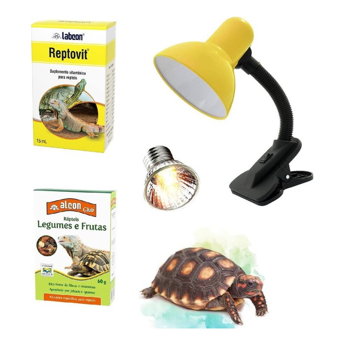Kit Jabuti Alimento Luminária com Lâmpada Uva Uvb 3.0 Reptil Generic Lampada Uva Uvb Repteis Terrari