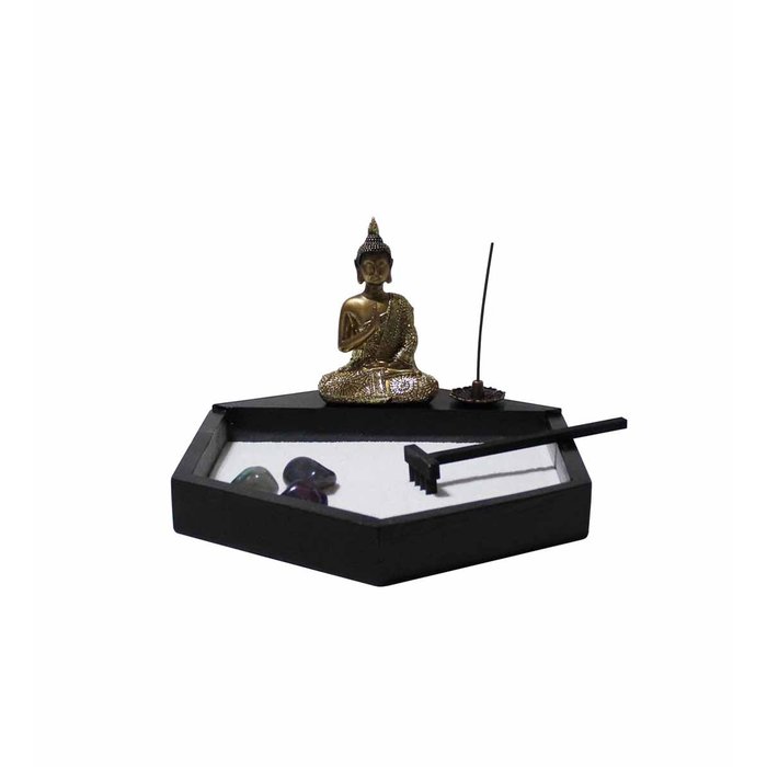 Kit Jardim Zen Japonês Buda Areia Pedras e Incensário 26cm