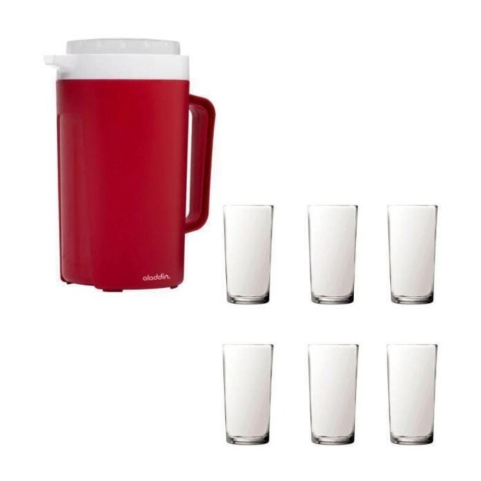 Kit Jarra Térmica Aladdin 2L Vermelho e 6 Copos Vidro 387Ml