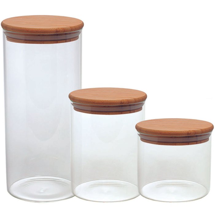 Kit Jogo 3 Potes Vidro Hermético com Tampa Bambu 300/500/1,2
