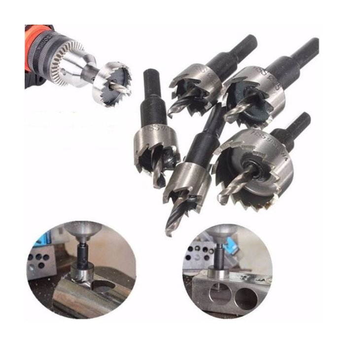 Descrições: Kit com 5 brocas Serra copo para fazer furos em Aço, ferro, cobre, bronze, alumínio, fibra de vidro, e etc. Dentes de metal duro para um furo rápido e preciso. Com broca guia para evitar a perfuração além da chapa de aço Perfeito para A Instalação de Fechaduras, puxadores em Portas e Armários e etc. Tamanhos: 32 mm, 18mm, 35mm, 55mm, 30mm Indicada para uso em furadeira manual!!! Características: 1. Feito de material de aço rápido, estável e durável, nunca ferrugem. 2. Amplamente utilizado para cortar furos em uma variedade de materiais, como madeira, plástico, folhas de PVC, placas isolantes, ferro fino, cobre, liga de alumínio, aço, etc. 3. Ideal para DIY, lar e construção geral/uso de engenharia. Incluído no pacote: 1x Conjunto de fresador (5pçs)