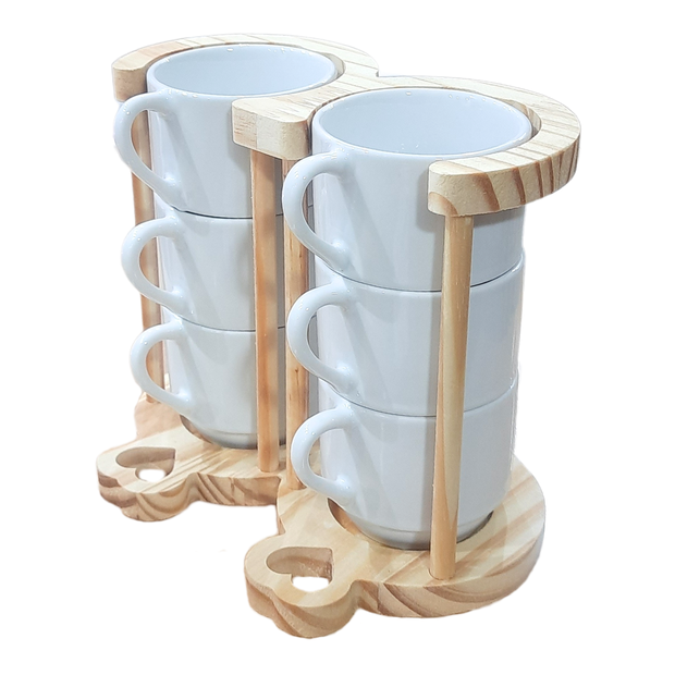 Kit Jogo 6 Xicaras Café/Chá hotel 200ml Empilháveis c/ suporte pinus - Porcelana Branca
