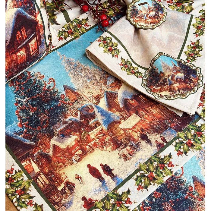 Kit Jogo Americano + Guardanapo Natal da Vila Nsw 2 Peças