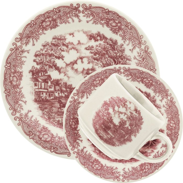 Peças decoradas com paisagens históricas são clássicos do universo das louças. Agora, além da decoração Cena Inglesa na cor azul e no modelo Actual, a Biona também traz uma paisagem histórica para o modelo Donna. A coleção Vilarejo retrata uma cena clássica na cor vermelha. Uma louça tradicional que é perfeita para todas as ocasiões.