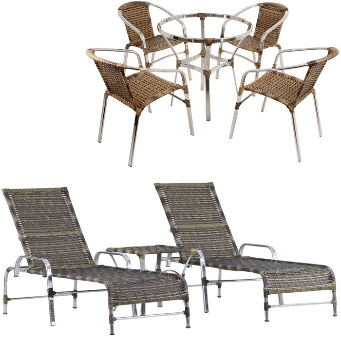 Kit - Jogo de 4 Cadeiras e Mesa Floripa em Alumínio com 2 Espreguiçadeiras Roma Regulável + - Capucc
