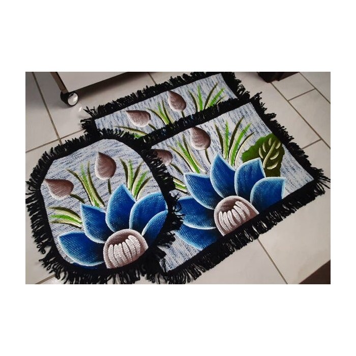 Kit Jogo De Banheiro 3 Peças Tear e Pintado À Mão Flor azul