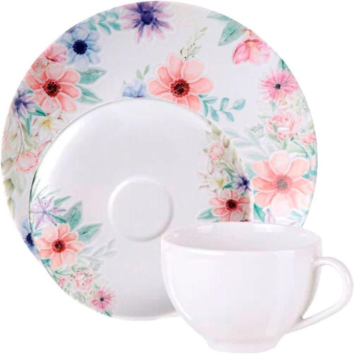 4 Xícara 250ml com Pires 15cm De Diâmetro Floratta;